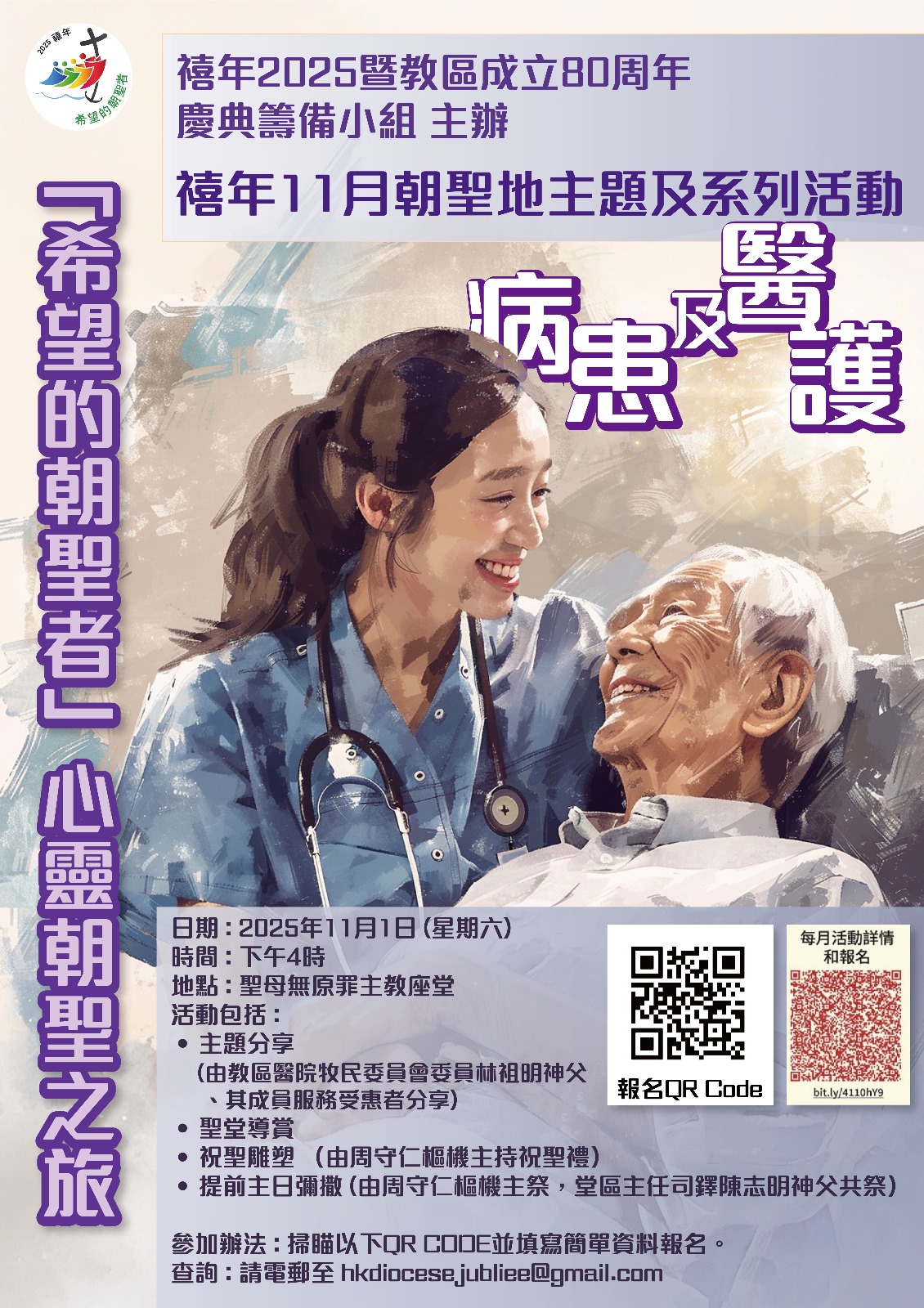 天主教香港教區為慶祝禧年 2025及成立80周年,特別成立「禧年2025暨教區成立80周年慶典籌備小組」,協調教區內各機構和團體,舉辦教區性培育和活動,體現藉慶祝禧年,天主教會走入社區,與社會上的弱勢社群同行,成為他們帶來希望的標記,並在禧年結束後2026年,透過慶祝香港教區成立80周年,延續教區與社會並肩的精神。