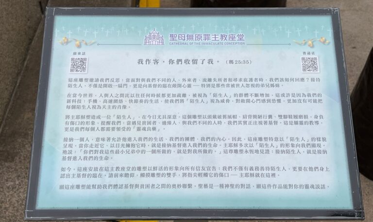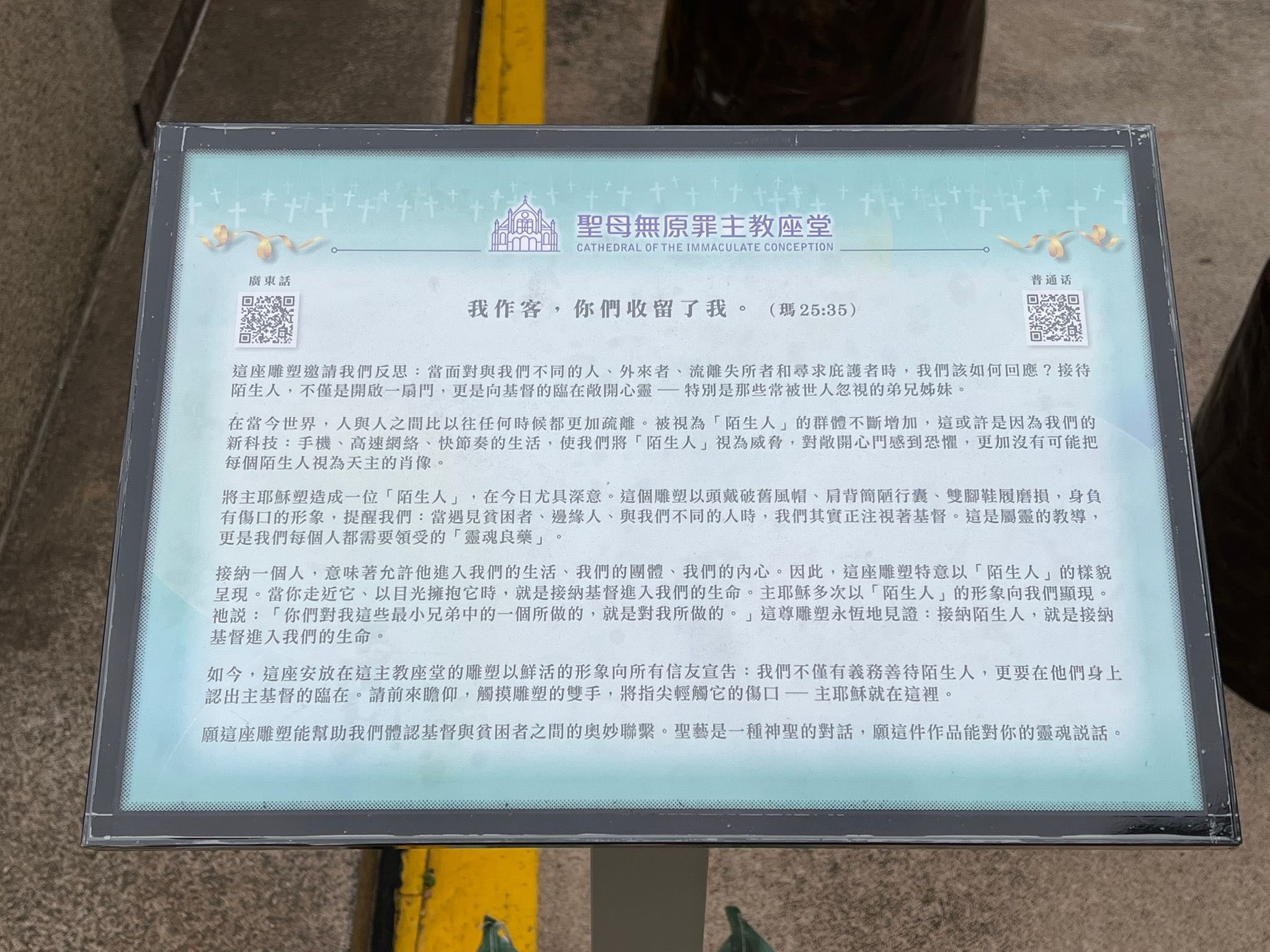 admin本地教會消息3 11 月, 2025 「我作客,你們收留了我」雕塑2025年11月1日 (六) 下午 5時主教座堂周守仁樞機主持祝福雕塑禮教區專為禧年訂製的9個藝術雕塑中的第8個雕塑這個雕塑提醒我們我們有責任關懷甚至接觸、認識,那些生活在社會邊緣的人#希望的朝聖者 #公教頻道 #周守仁樞機 #天主教香港教區