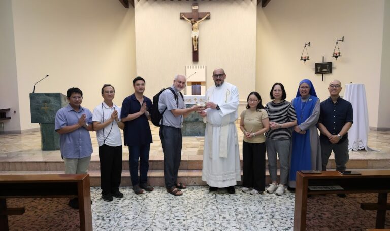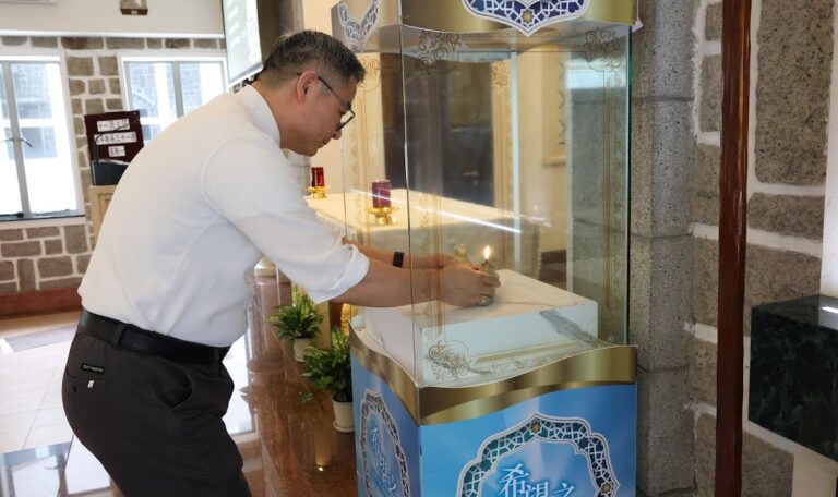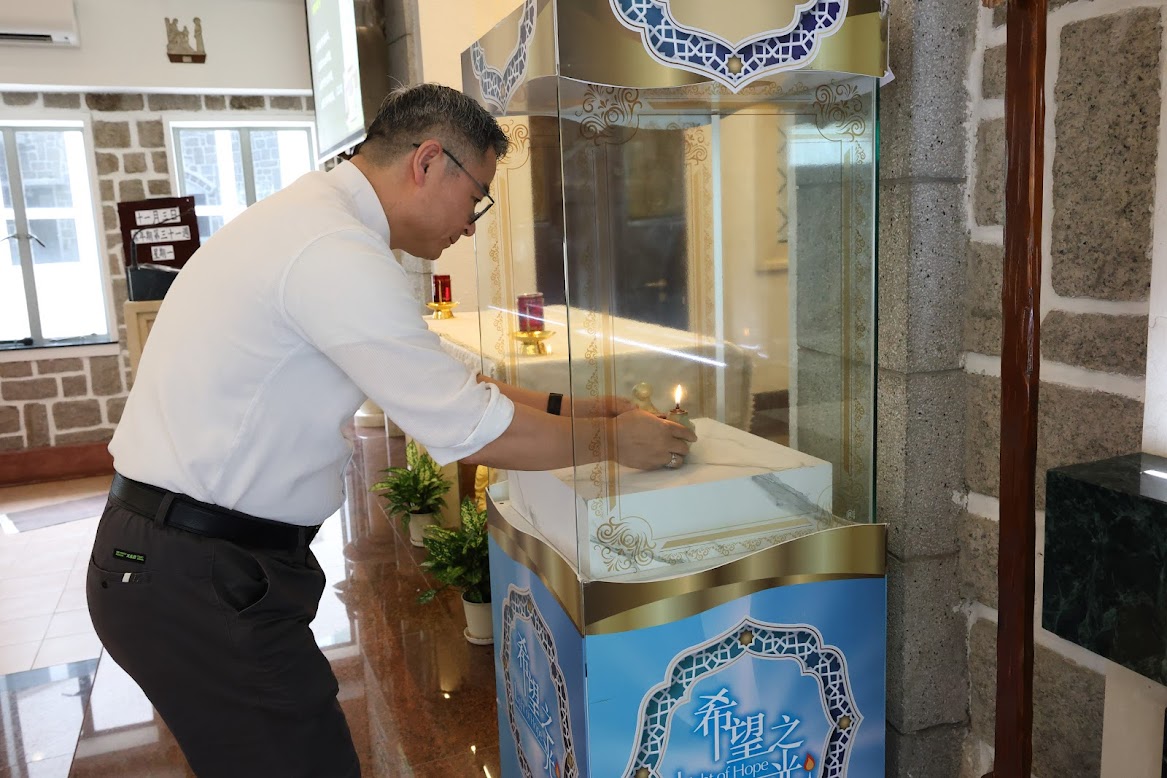 adminUncategorizedNovember 3, 2025 迎接禧年「希望之光」油燈為慶祝教會2025禧年,香港教區進行「希望之光」油燈傳遞。油燈於11月1日到達粉嶺聖若瑟堂,教友於聖堂一起迎接油燈,並舉行祈禱禮。主任司鐸戴民禧神父表示,主基督就是我們的真光,希望之光油燈正正提醒信友要效法基督,成為照亮他人、帶給身邊的人希望的光明。禧年「希望之光」油燈由今日起擺放在舊聖堂,並舉行多項祈禱、靈修及福傳等活動,直至11月16日中午,油燈會傳遞往長洲花地瑪聖母堂。
